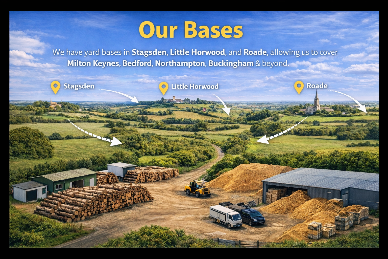 With yard bases in Stagsden, Little Horwood, and Roade, we are well placed to cover Milton Keynes, Bedford, Northampton, and Buckingham, along with many surrounding areas.